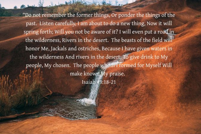 I have had to sit with that thought and process for a while. Especially, since the Scripture that has been rushing through the corridors of my soul for this year is Isaiah 43:18-21.