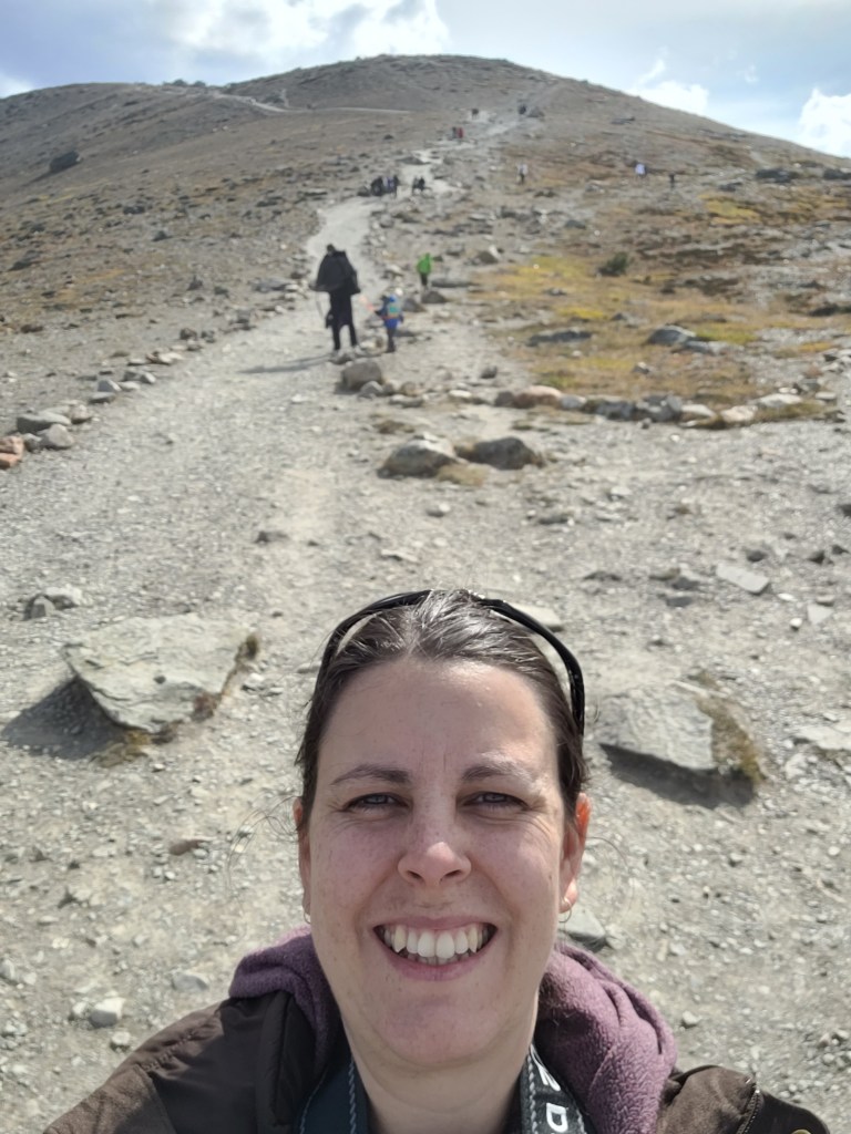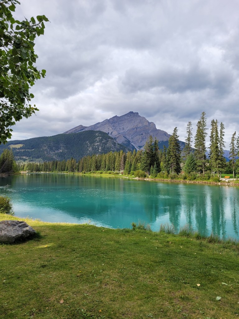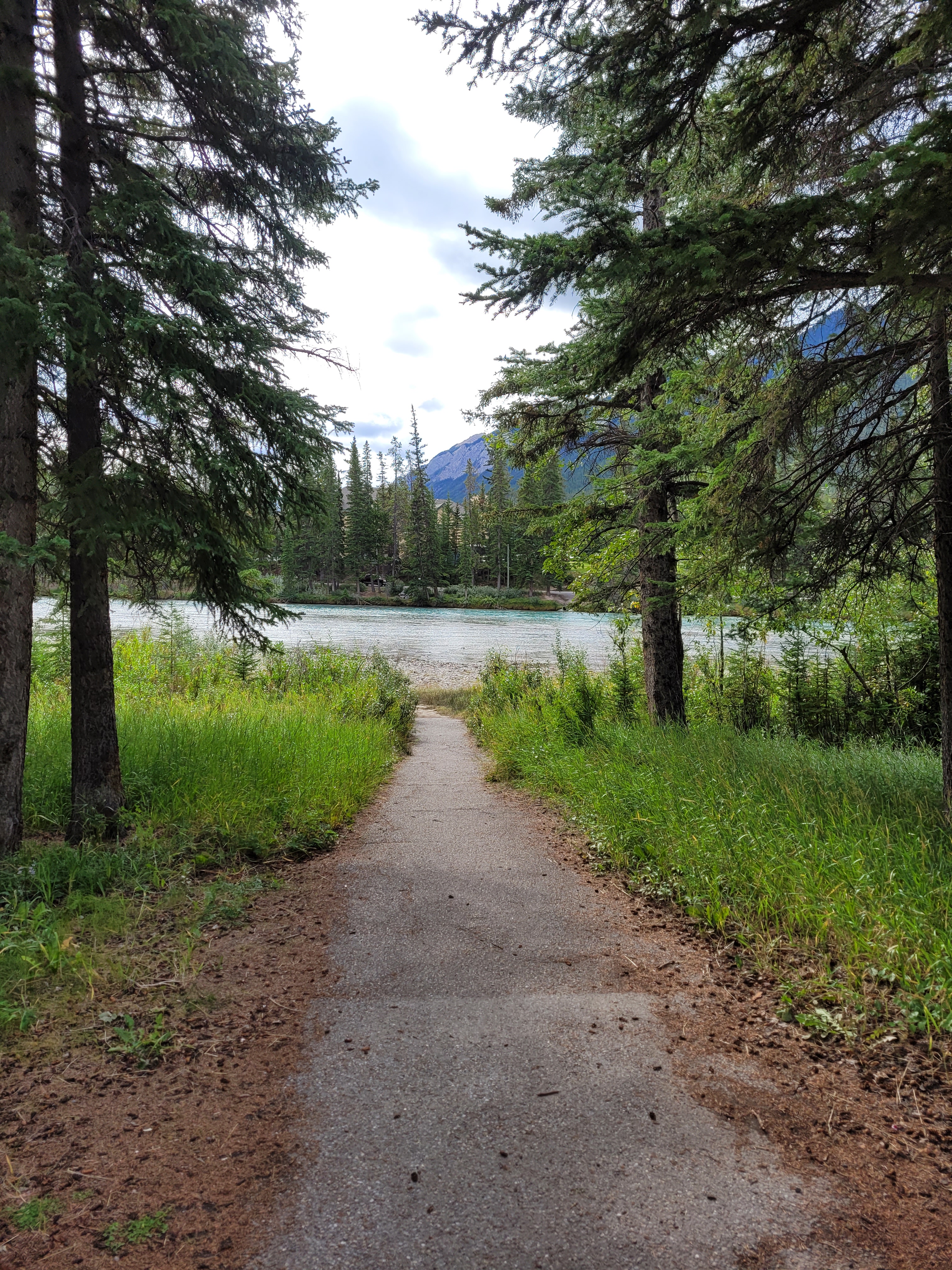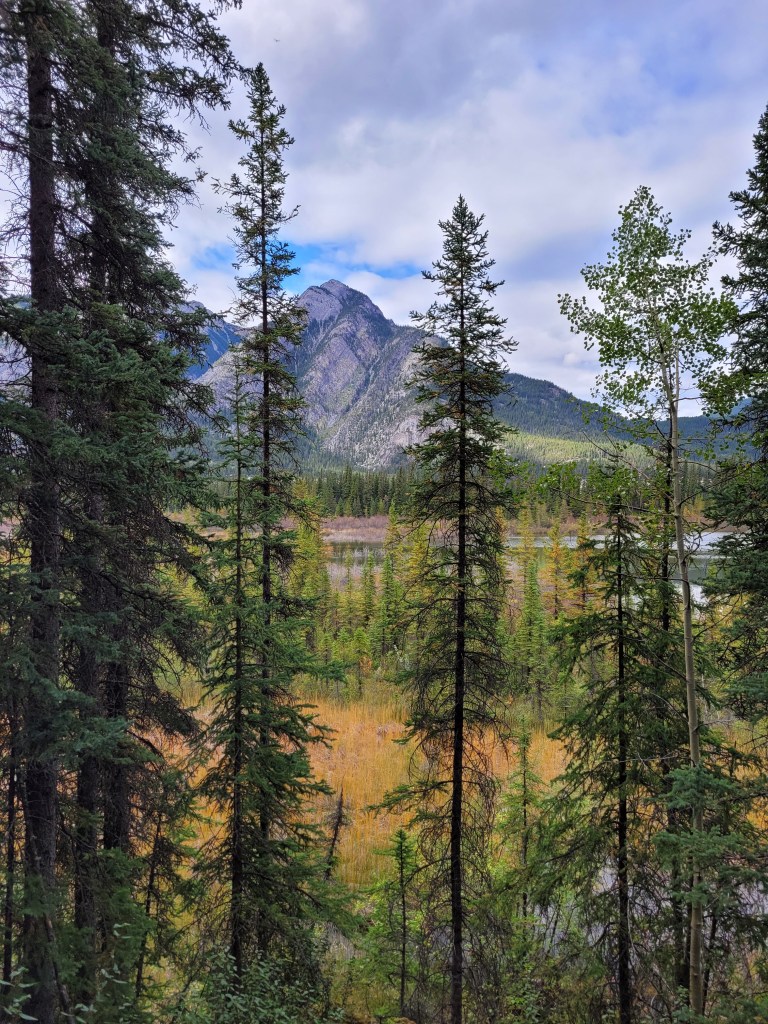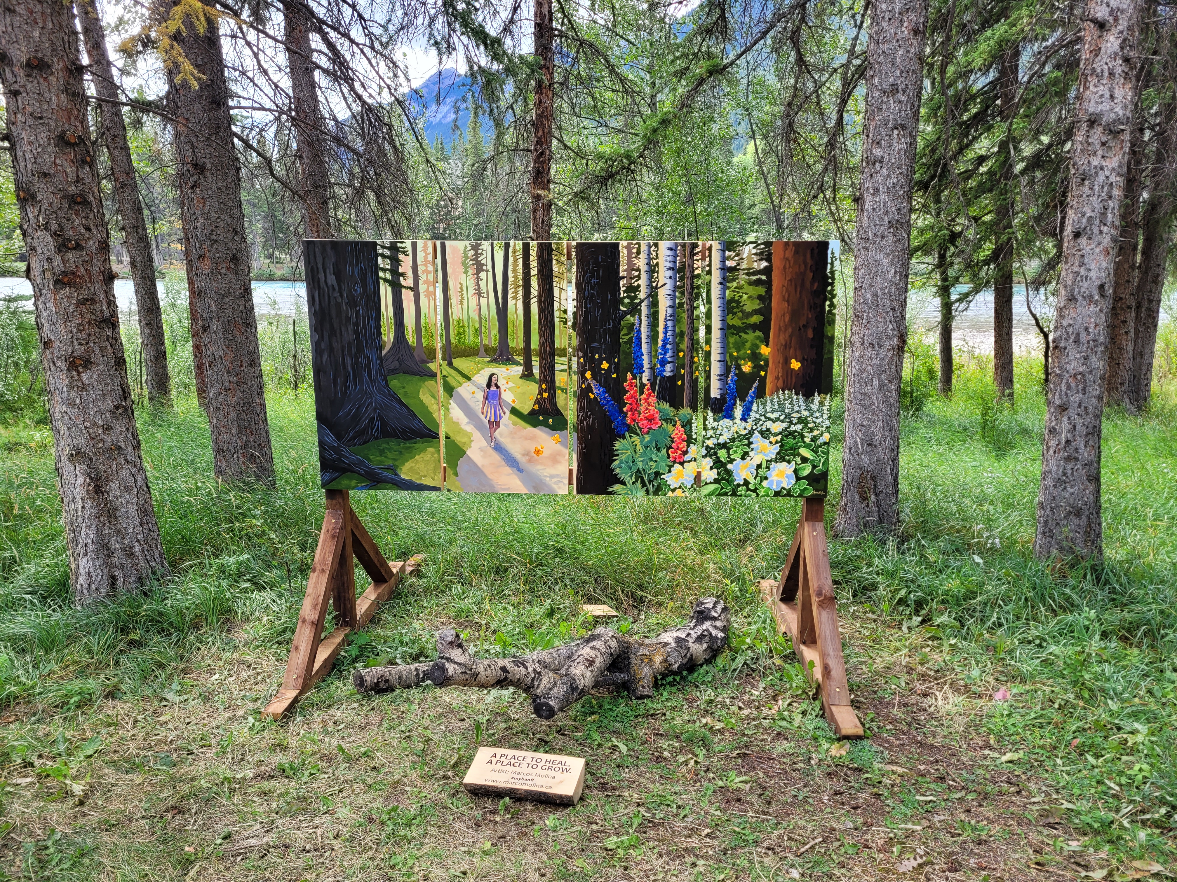 Leaving the Icefields, we drove through a snow storm! In August! It was still drizzling when we arrived in Banff, but we hurried to set up the camper, have a snack, and drove to the Hot Springs. We managed to get in just before they closed and enjoyed a lovely soak, which was fortunate since they were going to be closed for the remainder of our stay in Banff. We spent the rest of our time in Banff doing some hiking and sightseeing. One of the hikes took us on a lovely “Art in Nature” walk, which featured pieces by local artists.