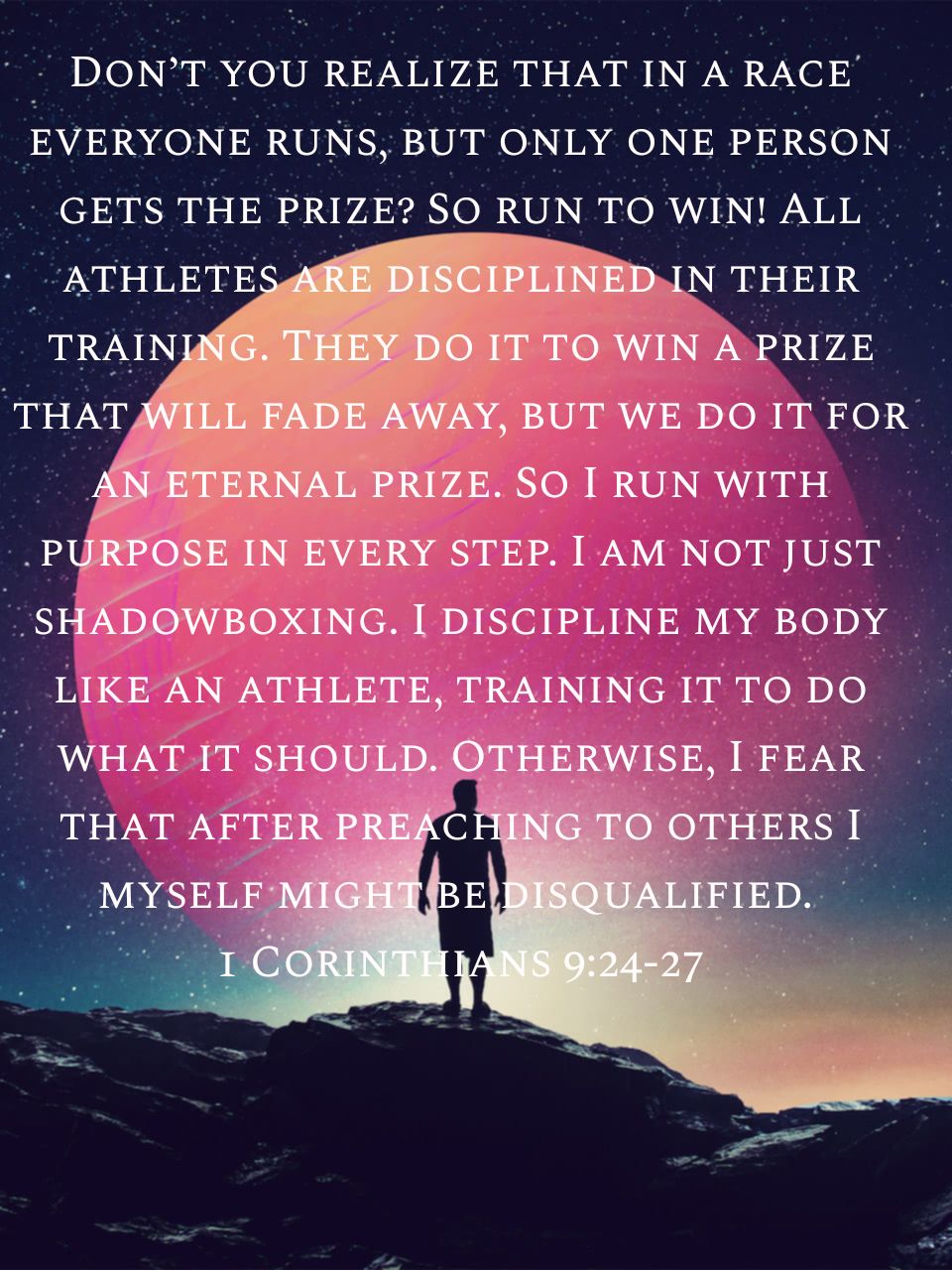 - Training that is consistent. I keep going back to the analogies of athletes in training. They set consistent routines that they follow diligently when they are training. They don’t change their routines, depending on their feelings. In the same way, I have to establish regular practices that will benefit me, my family, and those around me if I want to be effective at what God calls me to do. It’s not always the fastest, or the smartest, or the strongest that wins the race, but it is always someone that is consistent and dedicated.