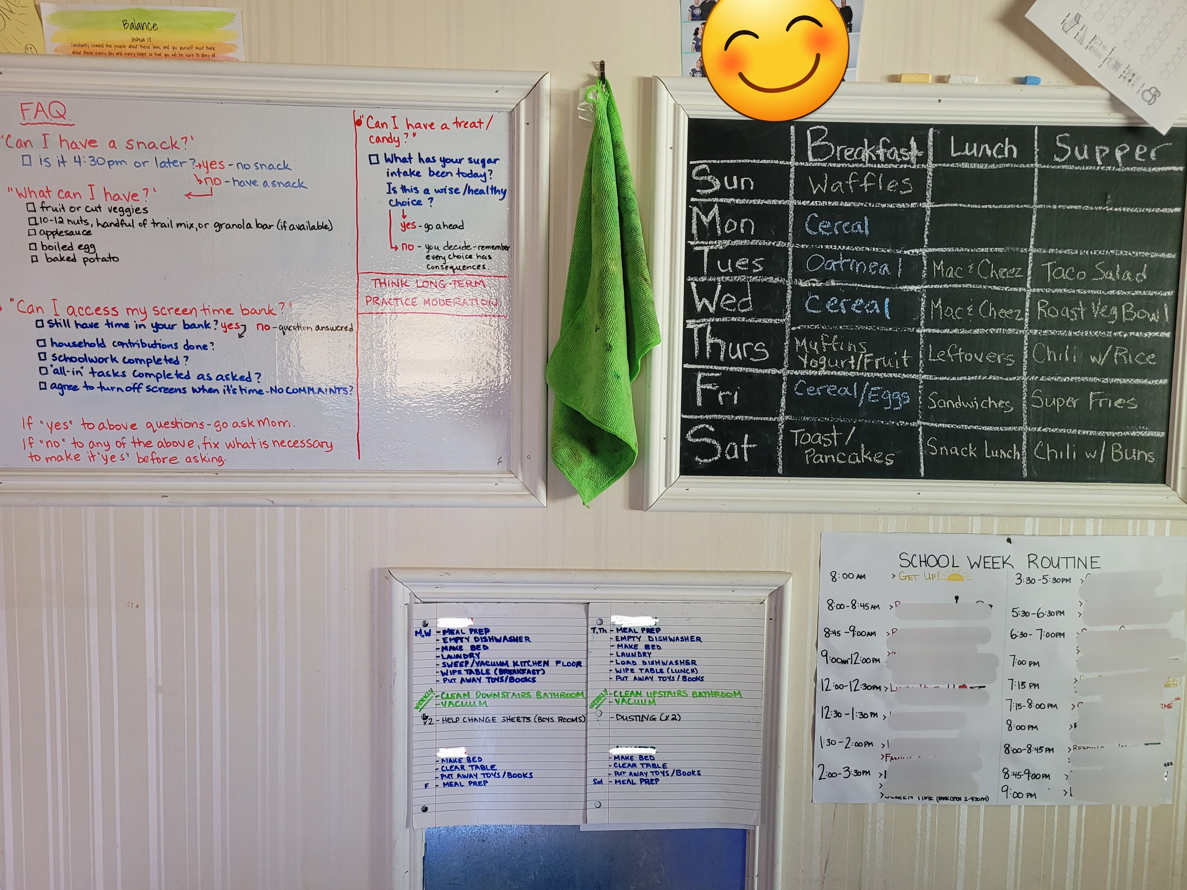 Speaking of renovations, I recently posted a picture to Facebook of my second oldest son, highlighting his hard work with the work being done on our bathroom. He was standing in front of our “Command Center” wall when I took the picture and after I posted it, I was surprised when a bunch of friends were asking about some of the routines and schedules I had posted on the wall.