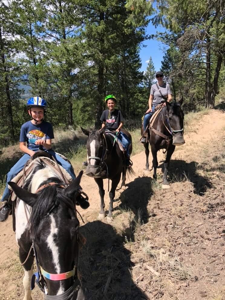 The heat was intense (between 34°C and 38°C every day, with little cloud cover and no air conditioning anywhere we stayed in BC), so that put a damper on a few things we wanted to do, but one of the highlights was being able to share my love of horseback riding with my oldest boys with a forest trail ride! I haven’t been riding in years, so it was really special to be able to share this moment with them. They loved it! Even the two little ones got to go on a pony ride in the corral and (at least one of them) had a great time.