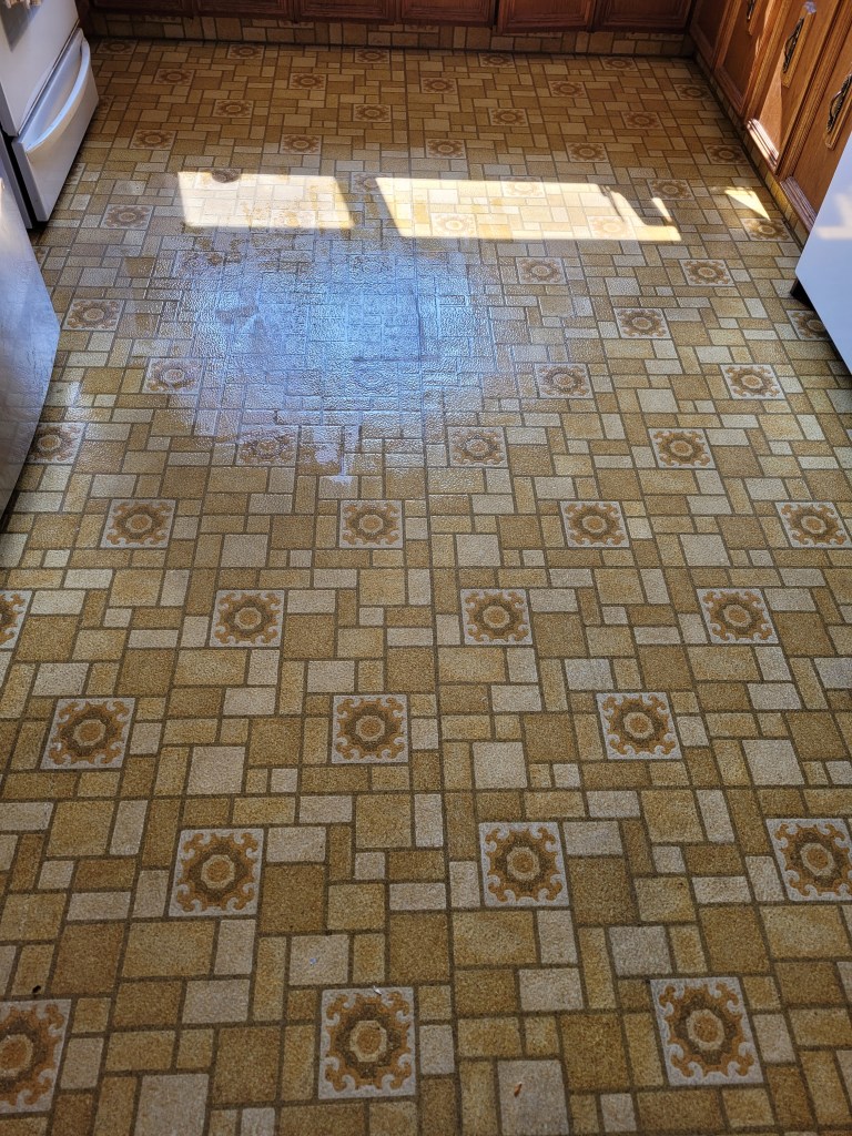 Yesterday morning, as I stared at my kitchen floor that so desperately needed washing, all I could think about was how much I hate cleaning that floor. It’s old, it’s stained, it’s ugly, and has become so worn over the years that it takes great effort to get all the dirt out of the crevices and cracks (and yes, that is a photo of my vintage “Harvest Gold” floor).