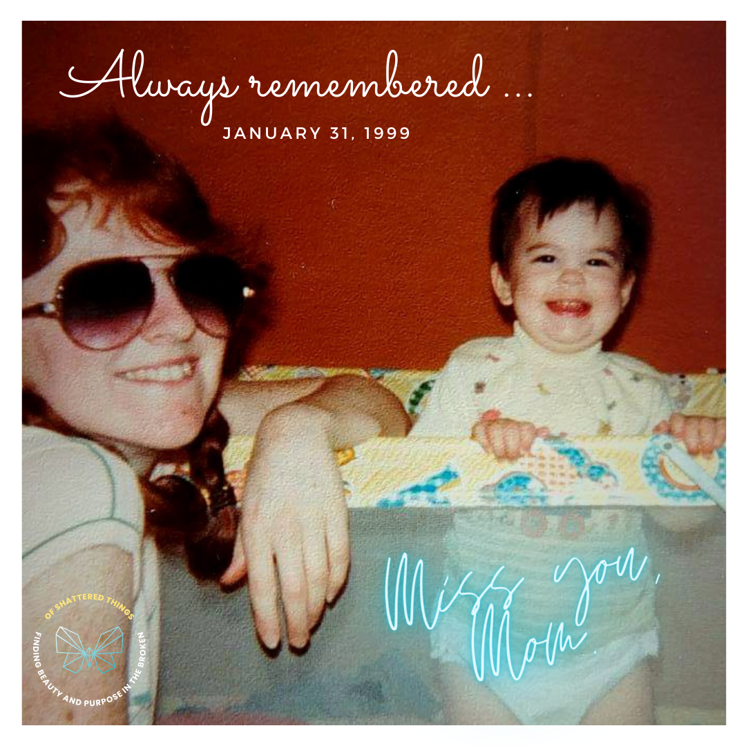 My mom was the person who introduced me to Jesus and taught me to seek Him for myself and I am forever grateful that she did. If not for my relationship with Jesus, I don’t know how I would have made it through. I clung to Him as my life line while I was drowning and suffocating in grief. He carried me through and eventually I came to find solid ground underneath my feet.