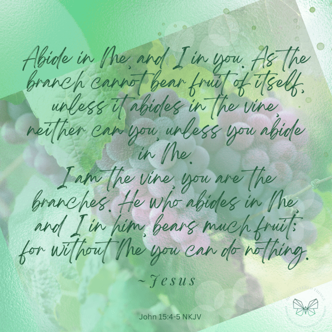 When we accept His gift of salvation and entwine our lives with His, a wonderful transformation takes place and we are no longer alone! We become one with Him. Our lives are no longer our own. But, our entwining with God isn’t just a one-time thing that happens when we say “yes” to Christ. Staying bound together, is an intentional daily choice to remain in that state of entwinement. A choice to abide.